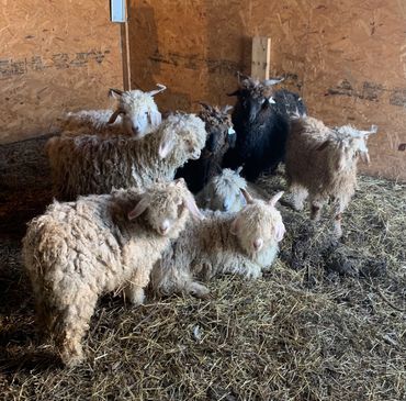 Raised again, as mostly pet animals, the Pygmy goats also have become famous for their "Goat yoga". Who doesn't want a baby goat jumping in their lap or on their back during a yoga pose, right? We've added the Angora goats to our herd as they produce mohair fiber, one of the most prized natural fibers with its soft, silk-like texture. Mohair is used to make many garment items such as sweaters, gloves, scarves and coats.